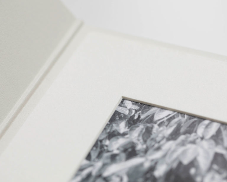 また、台紙の中に使っている枠はマット紙といって額装などする際に使用されているものです。お写真一枚一枚に合わせたサイズで、額装屋さんの手作業によって切り取っていただいています。